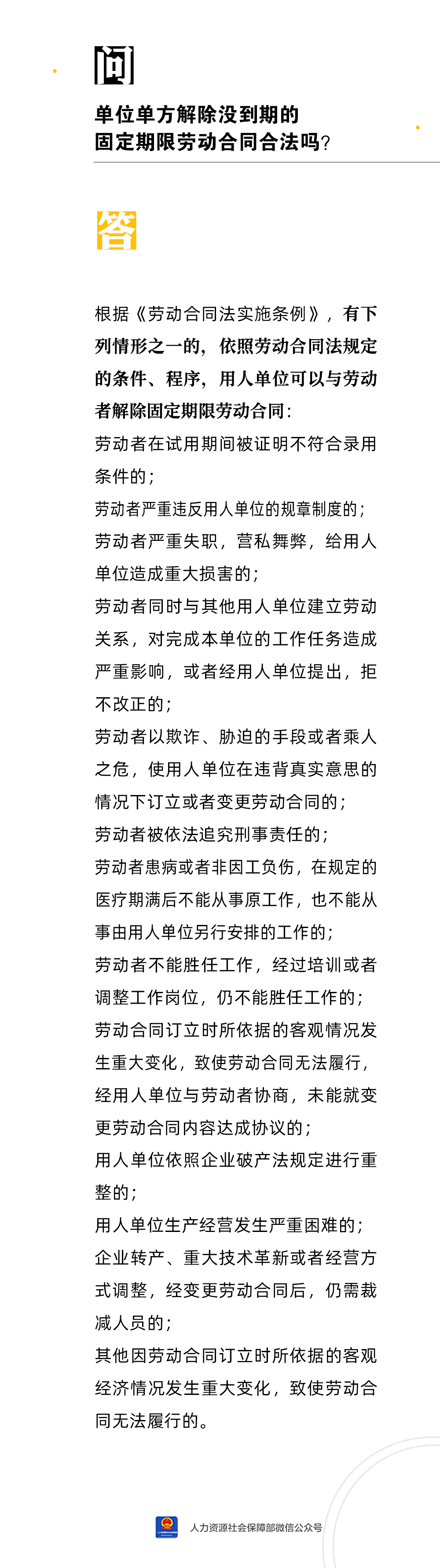 【人社日課·7月28日】單位單方解除沒(méi)到期的固定期限勞動(dòng)合同合法嗎?